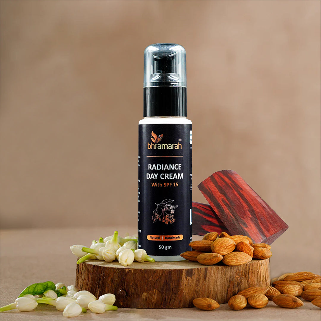 The Bhramarah day cream that can keep you glowing even on a rough day at work or home. Bhramarah Day Cream is the best herbal mix to start your day with. It contains a beautiful amalgamation of Sandalwood, Aloe-vera, Neem, and Peas, known for their antioxidants & anti-bacterial properties. Our Day Cream keeps your face well-nourished and fights sun damage and all other skin problems.