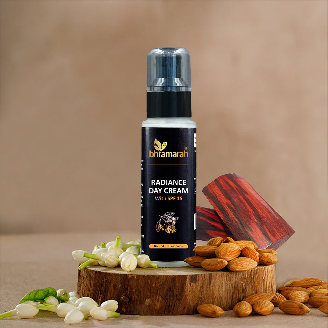 The Bhramarah day cream that can keep you glowing even on a rough day at work or home. Bhramarah Day Cream is the best herbal mix to start your day with. It contains a beautiful amalgamation of Sandalwood, Aloe-vera, Neem, and Peas, known for their antioxidants & anti-bacterial properties. Our Day Cream keeps your face well-nourished and fights sun damage and all other skin problems.